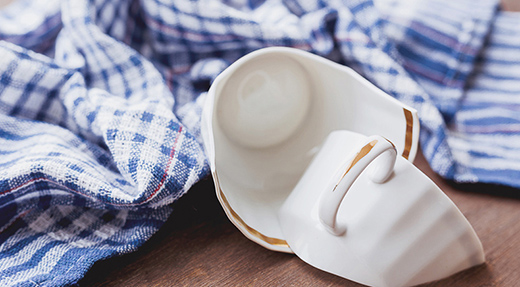 A friend mailed me some of her homemade pottery. Upon opening the box, I discovered the precious items had been damaged during their journey. One of the cups had shattered into a few large pieces, a jumble of shards, and clumps of clay dust. After my husband glued the broken mess back together, I displayed the beautifully blemished cup on a shelf.
